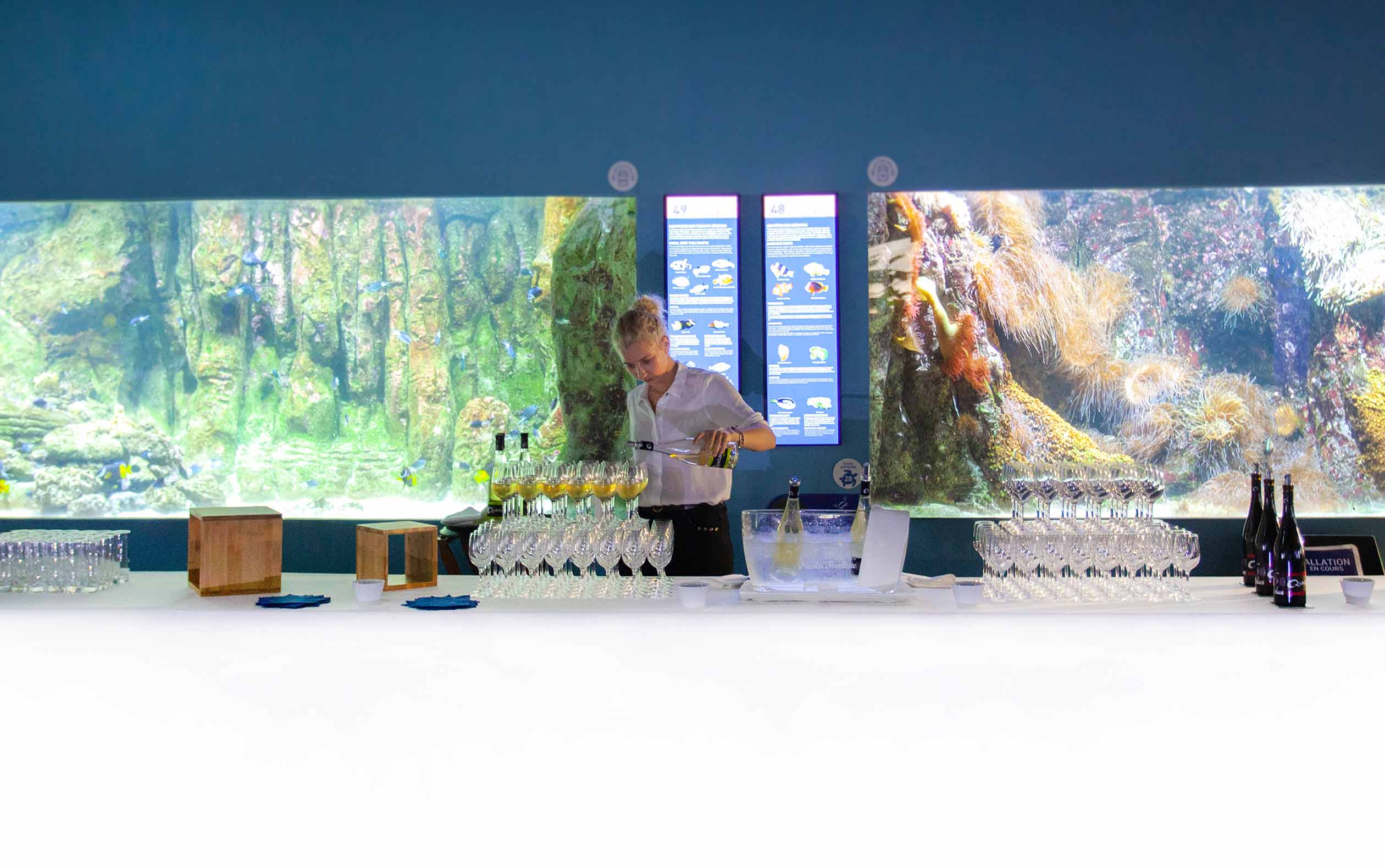 Doté d’un bassin de 150 000 litres d’eau de mer en fond de scène, l’Amphithéâtre René Coutant est l’endroit rêvé pour votre réunion de travail, votre séminaire ou votre conférence.