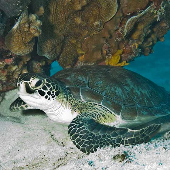 Parmi toutes les espèces de tortues marines, la tortue verte est celle qui est le plus exploitée. Les œufs sont consommés par certaines populations côtières et l’animal adulte est capturé pour ses écailles, sa chair, sa peau.